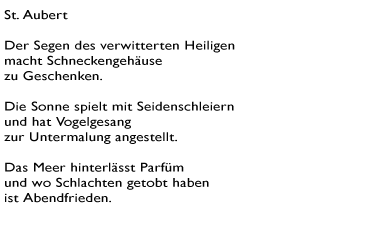 Ulrike Göttlich . Lyrik : St. Aubert | Lyrik hören und sehen als mp3 oder movie unter www.ulrikegoettlich.de | Lyrik à la carte